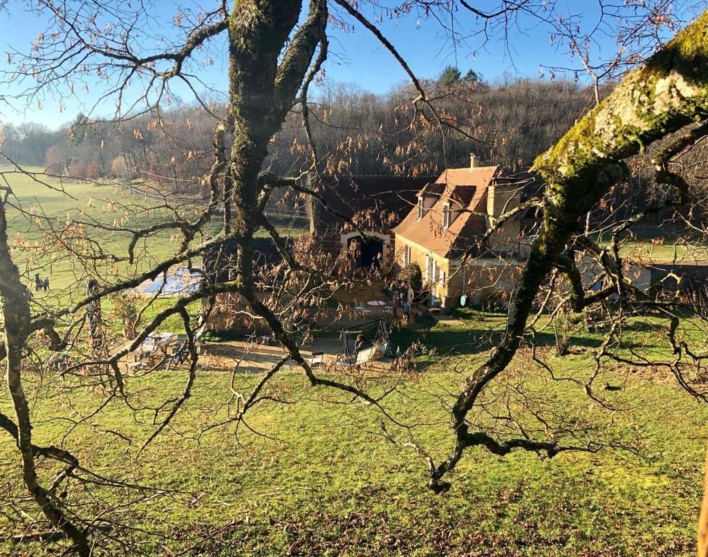 De voormalige boerderij (fermette) is gelegen aan een doodlopende weg op ruim een kilometer van een gehuchtje, Lavalade. Ca 300 meter verder is nog een pension voor paarden. Daar houdt de weg op. Via bospaden kun je wel verder. Er is een dorpje met een bakker op 4 kilometer afstand. Dat is met de fiets te bereiken, maar terug heb je een steile klim.